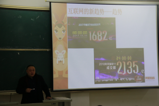 讲座伊始,主讲人曹鹏飞老师凭借在电商界积累的丰富店铺运营,产品选品及店铺定位等技术经验,给同学们分析讲解了许多电商方面的实际操作案例。并通过系统的介绍国内领先的大数据营销平台“阿里妈妈”及互联网的新趋势说明了在新时代提升客户体验的重要性。而后又以淘宝的运营为案例,依次提出淘品牌、店铺营销、千人千面等概念,使大家对自己日常接触的事物有了更深的了解。