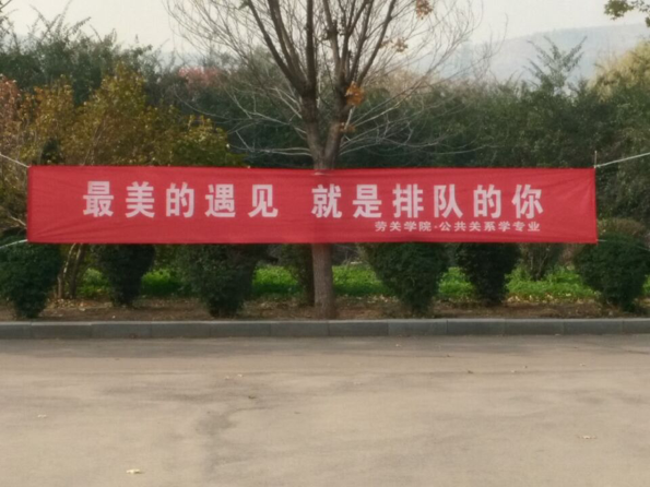 “最美的遇见就是排队的你”、“喜欢你的那么多,我还在排队等你”、“留一点距离,诠释文明礼仪”。11月14日,在山东管理学院的校园里出现了这样的横幅标语。据了解,这些标语是劳动关系学院公共关系专业为倡导校园文明之“排排更健康”活动而特别创意的。