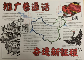 同期举办的“以普为纽带,连接你我他”画报宣传活动以轻松活泼的形式吸引了众多学生参与。本次活动通过绘制普通话发展史、生僻字解析等主题内容,帮助学生系统了解普通话的发展脉络,增强对语言文字规范化的认识,提升“学好普通话、用好普通话”的自觉意识和实际能力。搭建交流平台,凝聚团结力量:以普通话为纽带,打破沟通壁垒,促进师生、同学间的顺畅交流,强化“连接你我他”的共同体理念,推动形成“人人参与推普、共同使用规范语言”的良好氛围。同学们围绕推普主题展开创作,通过精心绘制的画报,展示国家通用语言文字的优美与智慧。作品风格多样,既表达出对普通话文化内涵的理解,也传递出团结同心、共建中华民族共同体的真诚愿望。