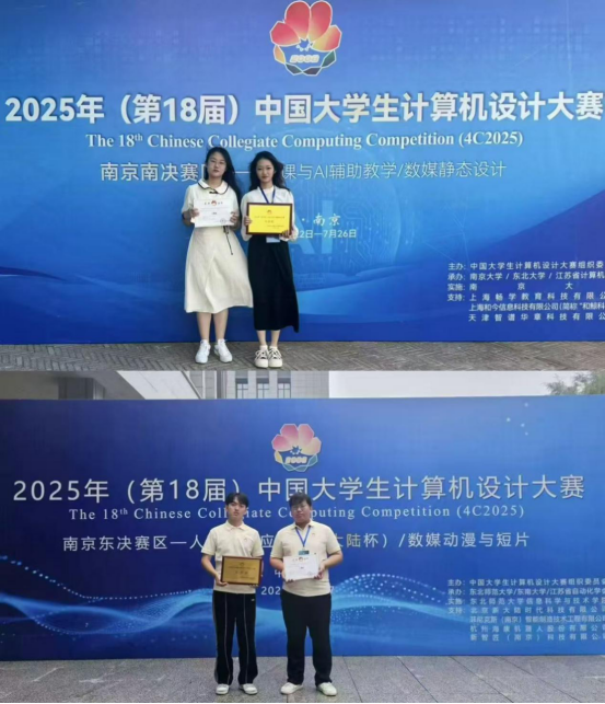 近日,劳动关系学院学生在第18届中国大学生计算机设计大赛中表现卓越,凭借优秀作品与出色表现获得国赛二等奖一项、三等奖一项,省赛一等奖1项,二等奖2项、三等奖2项,这一成绩不仅是对学生专业技能的肯定,也反映了学院在AI素养培养方面的积极探索与实践。