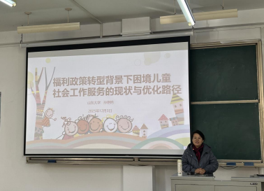 为深化社会工作专业学生对学科前沿与实践的理解,提升其专业素养,近日,劳动关系学院特邀山东大学哲学与社会发展学院副教授孙艳艳,为社会工作专业学生举办了专题学术讲座。讲座聚焦“福利政策转型背景下困境儿童社会工作服务的现状与优化路径”。